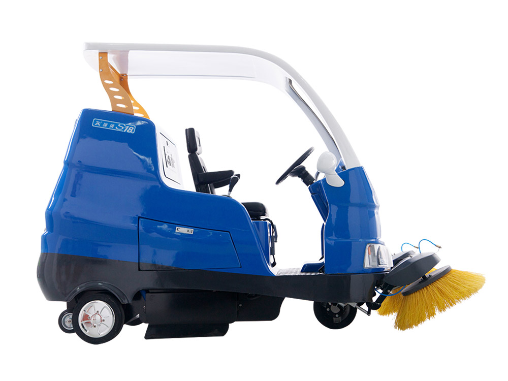 Ruiqing S18 medium and large driving sweeper is suitable for cleaning workshop, warehouse, factory, school, community, square and other large indoor and outdoor places. The side brush sweeps the garbage to the middle, and the lower roller brush directly throws the garbage into the dustbin. The built-in dust collection and filtration device can complete the cleaning, collection and dust control at one time, which is suitable for 5000-50000 M2 places.