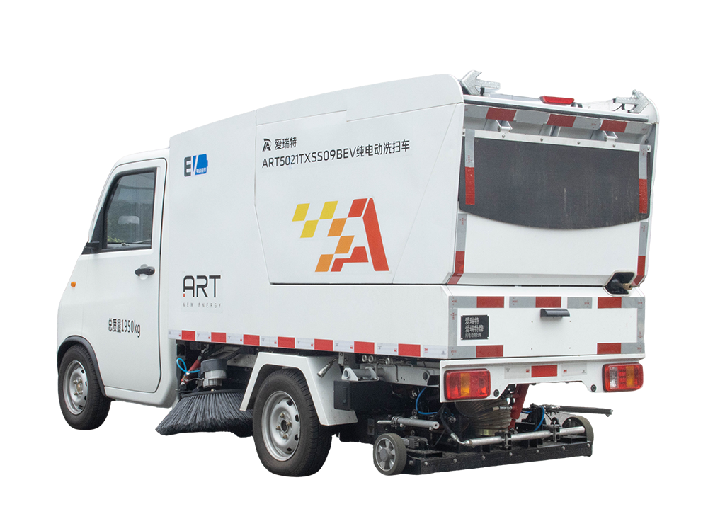 ART5021TXSS09BEV純電動(dòng)洗掃車主要用于主干道、非機(jī)動(dòng)車道、背街小巷等路面的普掃作業(yè),集清掃、高壓沖洗等功能為一體,可快速清掃落葉、石子、沙塵、白色垃圾等,垃圾,自卸傾倒。