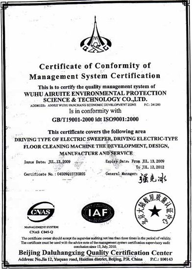 順利通過ISO9001:2000質(zhì)量管理體系認(rèn)證必將是愛瑞特公司前進(jìn)道路上跨越的又一臺階。相信在全體員工的努力下,愛瑞特公司不斷學(xué)習(xí)、吸收國內(nèi)外先進(jìn)的管理經(jīng)驗(yàn),一定能為廣大客戶提供更多更高質(zhì)量的產(chǎn)品與服務(wù)。