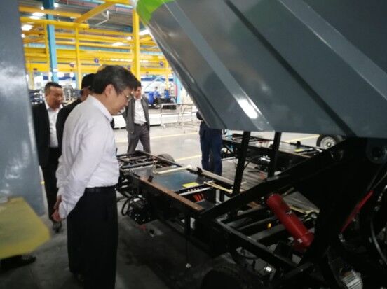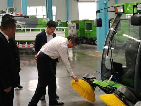 考察期間,尹總一行參觀了公司的生產基地,艾總詳細介紹了公司在新能源環衛車行業的發展歷程、技術先進性、國內外發展現狀及市場前景,期間,尹總就產品的科技創新,節能效益分析等問題進行了詳細咨詢,艾總一一解答。