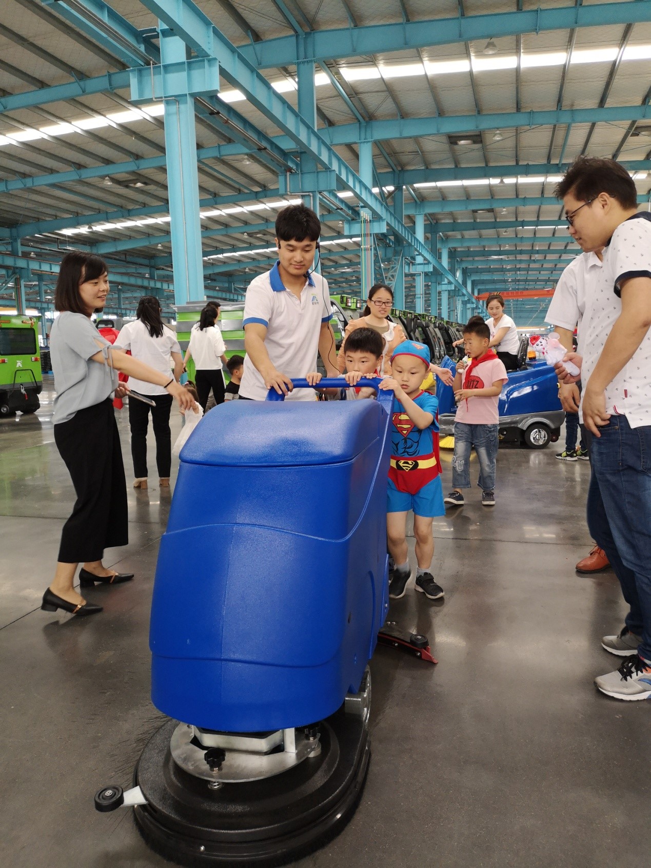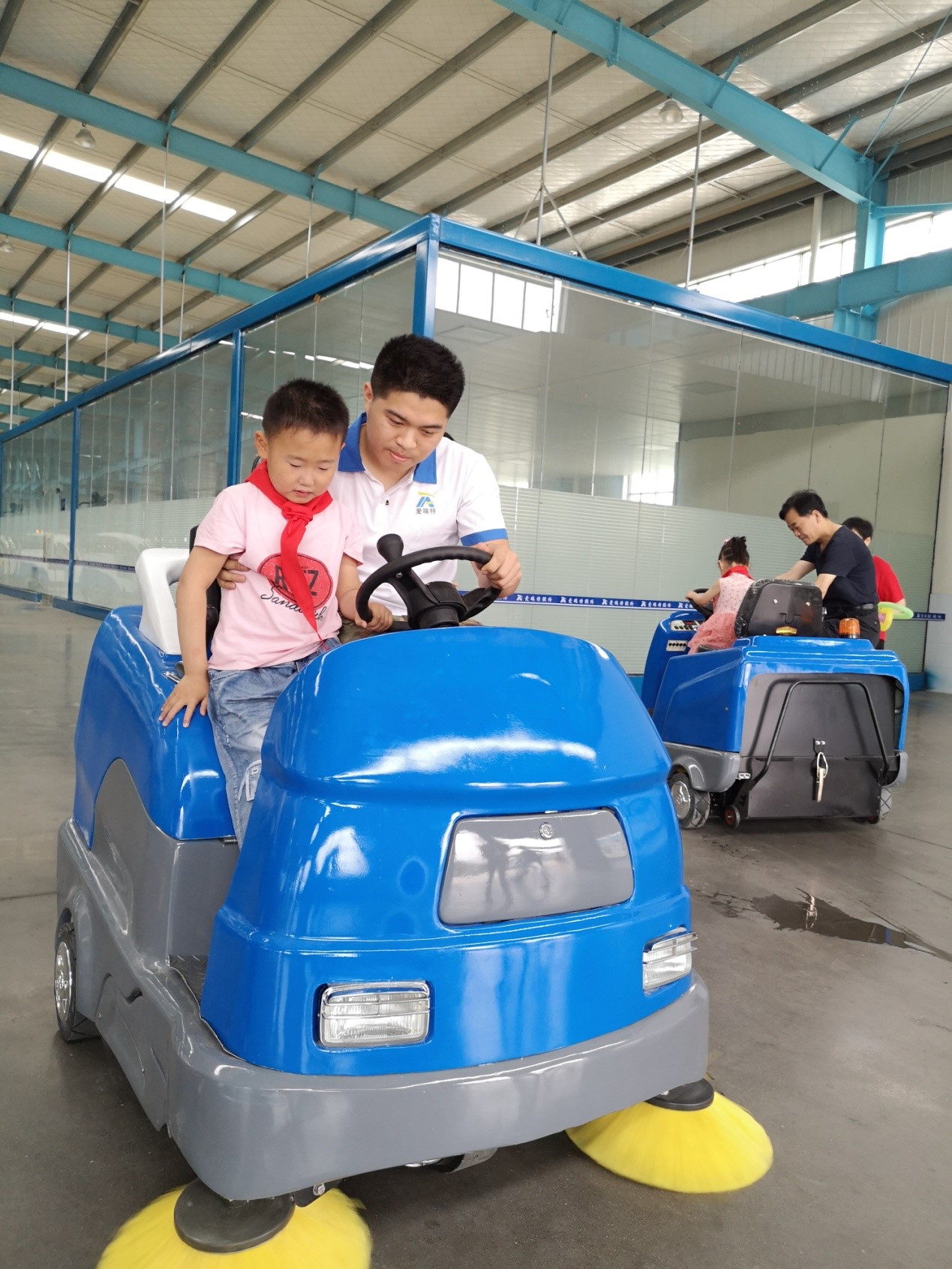 寶貝們開著爸爸媽媽設(shè)計(jì)制造的掃地車、洗地機(jī),感到了無比的自豪和興奮,